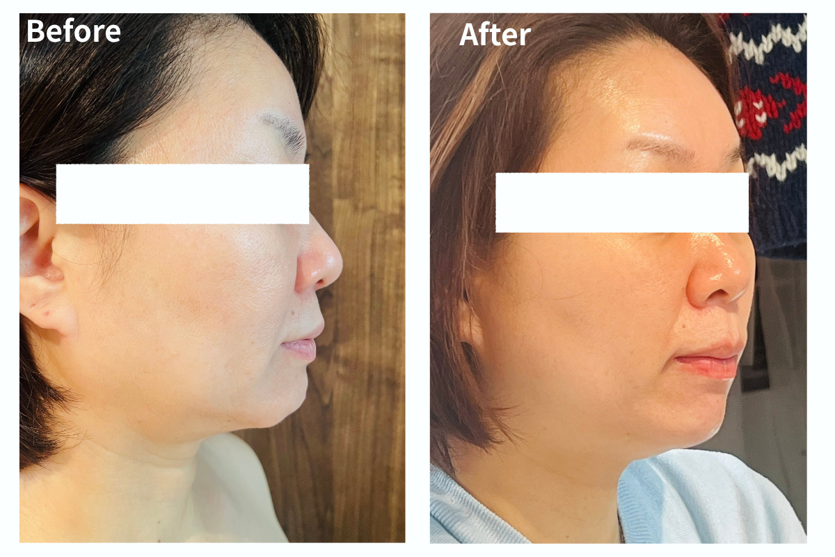 一度の施術でこれほどまでにフェイスラインがスッキリ整います。